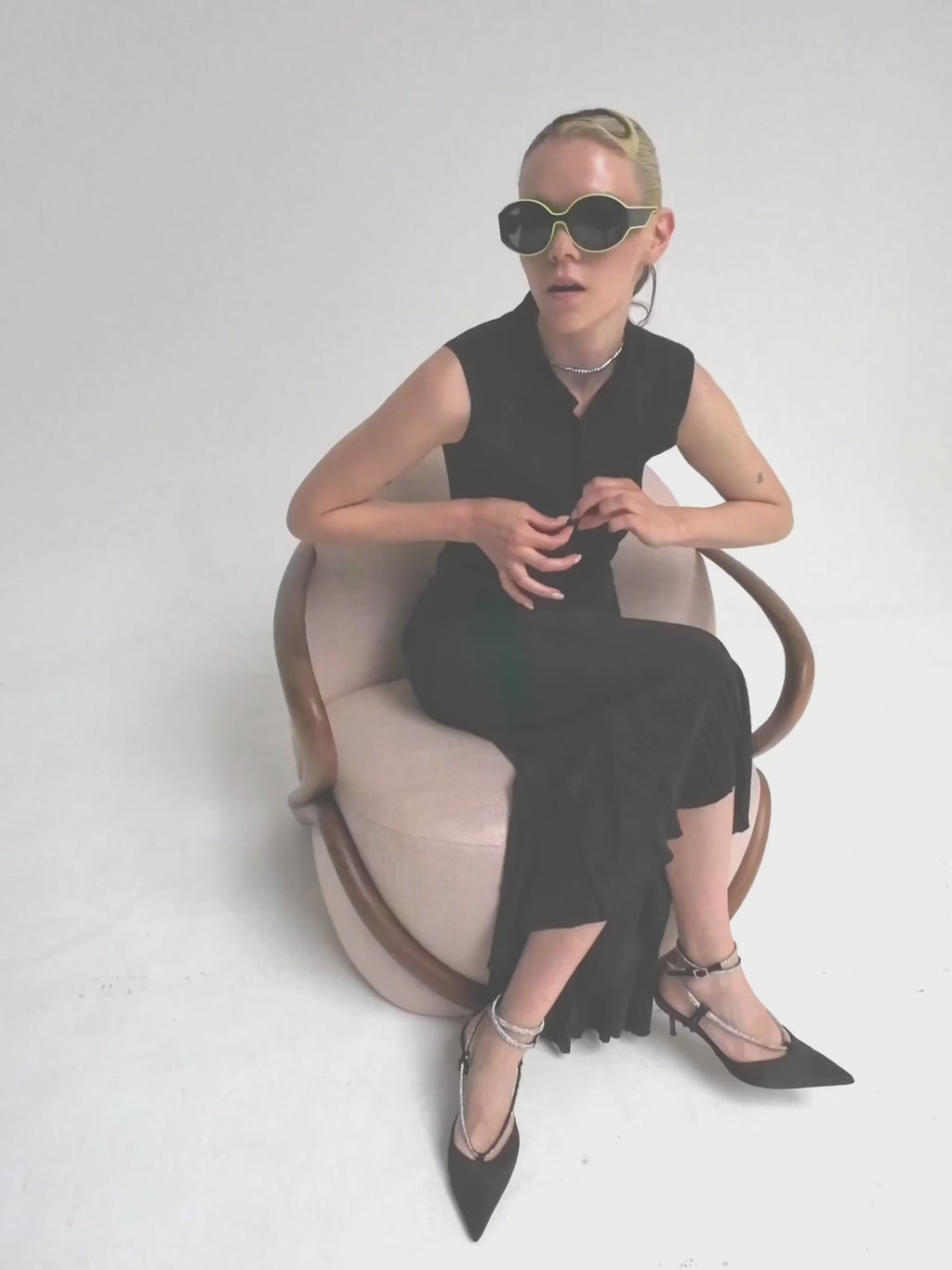 Show off your beautiful curves in this high-waist pleated skirt. Its cut is designed to accentuate the female body in an elegant way, and its asymmetrical hem gently reveals part of the legs.